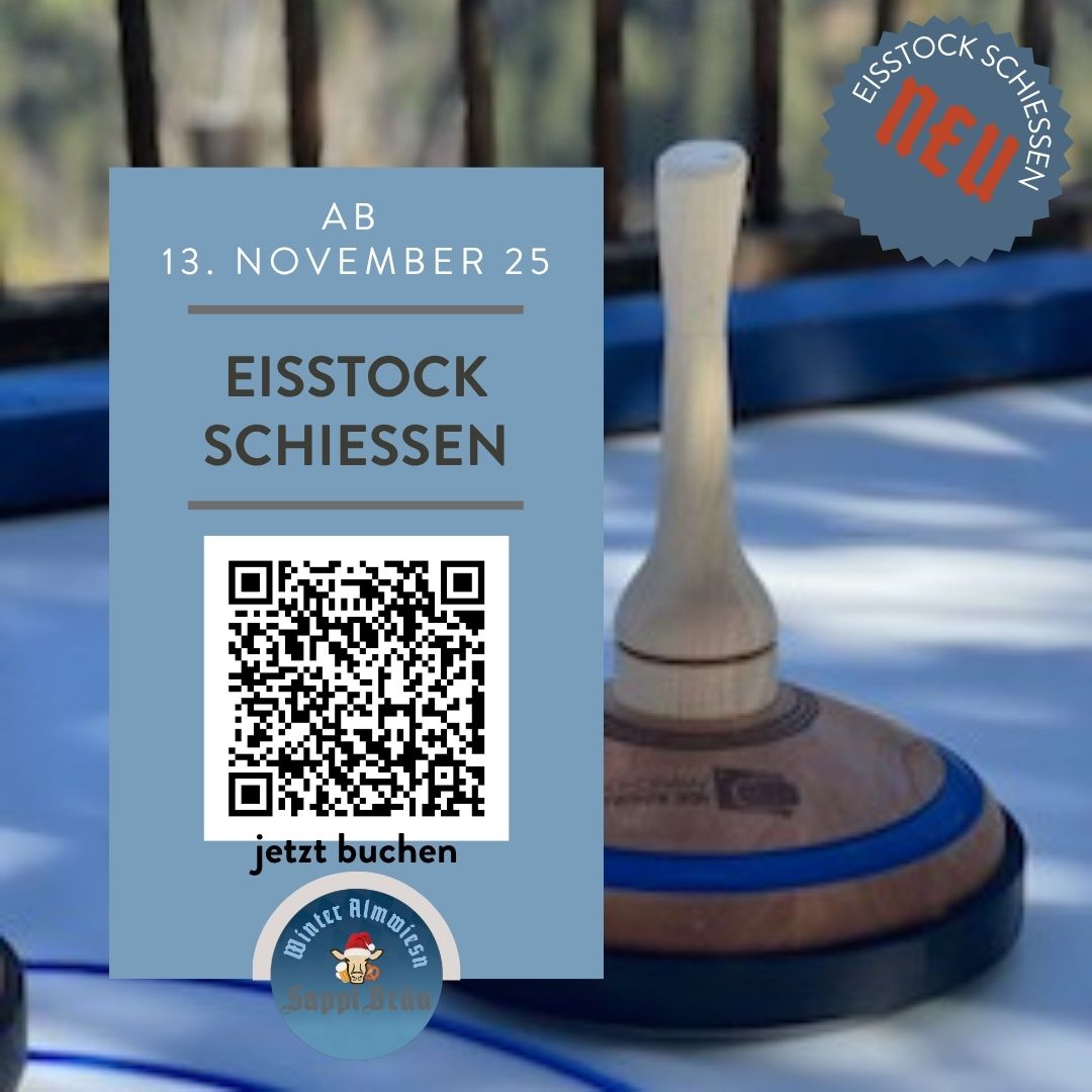 Reserviere jetzt deinen Tisch in unserer Almhütte oder buche unsere Eisstockbahn über unseren Link:
